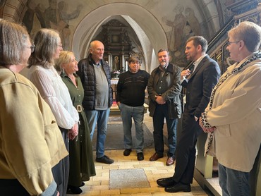 Konkret renovering af Osted Kirke, dåbstal, menighedsrådsvalg, engagement af unge, diakoniarbejde og arbejdsmiljø. Der var meget på tapetet, da Minister for byer og landdistrikter, kirkeminister og minister for nordisk samarbejde, Morten Dahlin (V), kiggede forbi Osted Kirke til et uformelt visit sammen med Lejre-borgmester Tina Mandrup (V). Intet var for småt eller stort, og mens alle fandt sig til rette, var der også tid til at se kirkens udsmykning an – både kalkmalerier fra middelalder såvel som Ole Søndergaards malerier fra 1924.